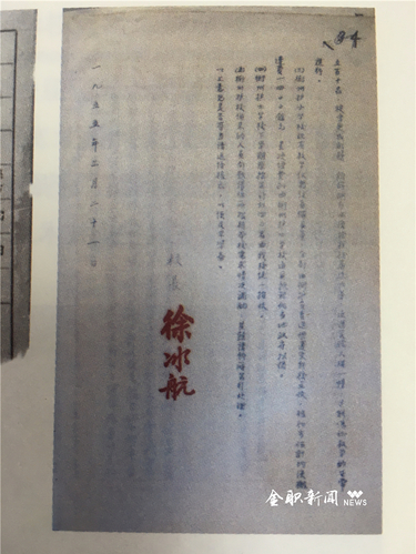 (图为由徐冰航校长签署的文件)