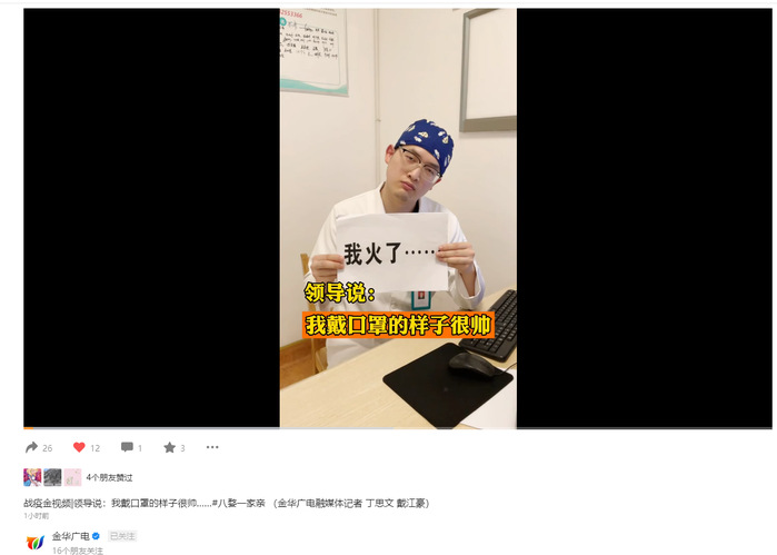 金华广电视频号:战疫金视频|领导说:我戴口罩的样子很帅……