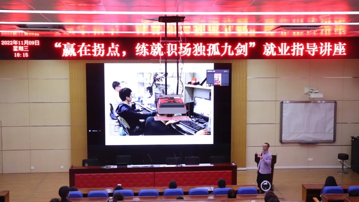 11月9日,医学院举办“赢在拐点,练就职场独孤九剑”就业指导讲座,由浙江小虾科技有限公司总经理吴勇担任主讲,设有线上、线下两个会场,吸引来自学院6个专业500余名学生参加。