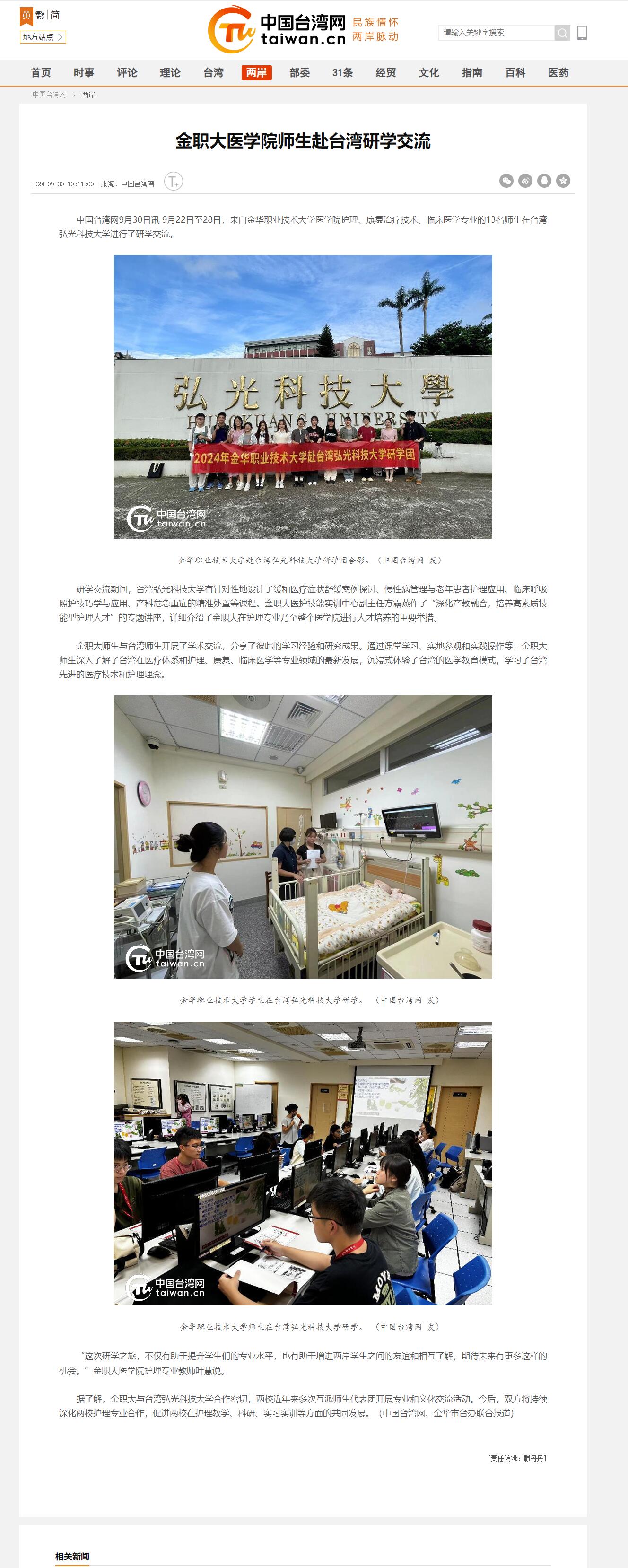 中国台湾网:金职大医学院师生赴台湾研学交流