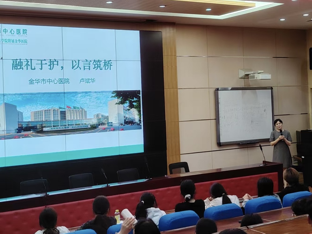 为培养兼具人文关怀与扎实专业技能的护理人才,助力护理专业学生提升沟通能力、更好服务患者,近日,金华市中心医院脑外科主任护师卢斌华应邀来校,在医学院开展以“融礼于护,以言筑桥”为主题的讲座,为学生铺就起了成长进阶之路。据悉,此次讲座是医学院“四百工程”铭志行动暨护理专业群“双高”建设特色任务之一。