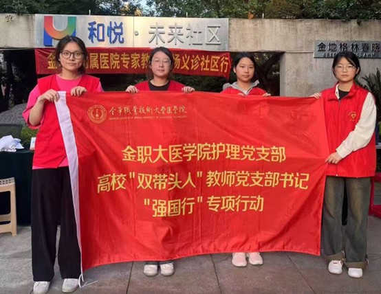 在全面推进健康中国建设的新征程中,医学院护理学生党支部充分发挥专业优势,深入践行卫生健康服务使命。5月12日国际护士节当天,在和悦·未来社区,该党支部师生联合金职大附属医院专家团队开展“百场义诊社区行”活动,通过健康咨询、疾病筛查等专业服务,切实将优质医疗资源下沉基层,构建起守护群众健康的“第一道防线”。