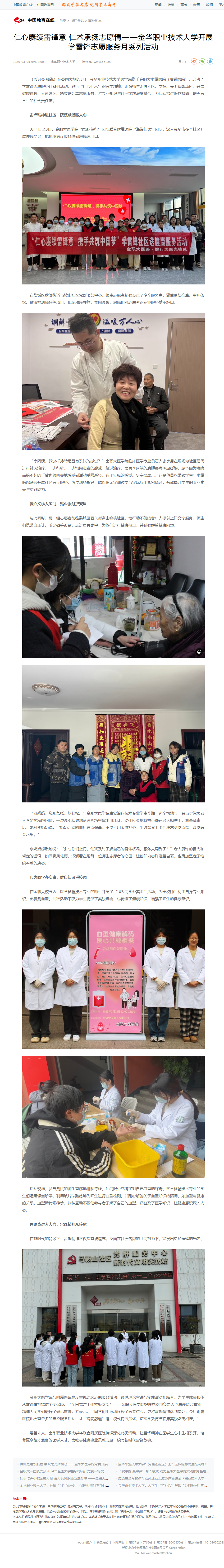 中国教育在线:仁心赓续雷锋意 仁术承扬志愿情——金华职业技术大学开展学雷锋志愿服务月系列活动