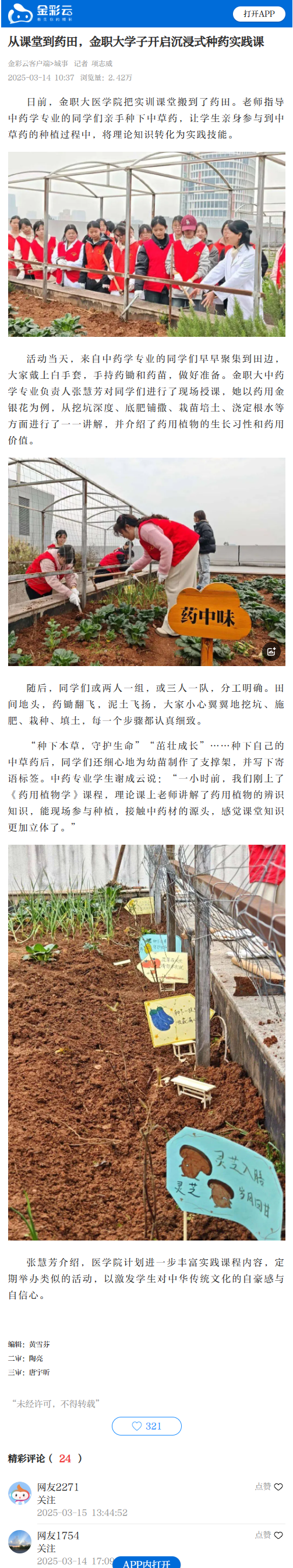 金彩云:从课堂到药田,金职大学子开启沉浸式种药实践课