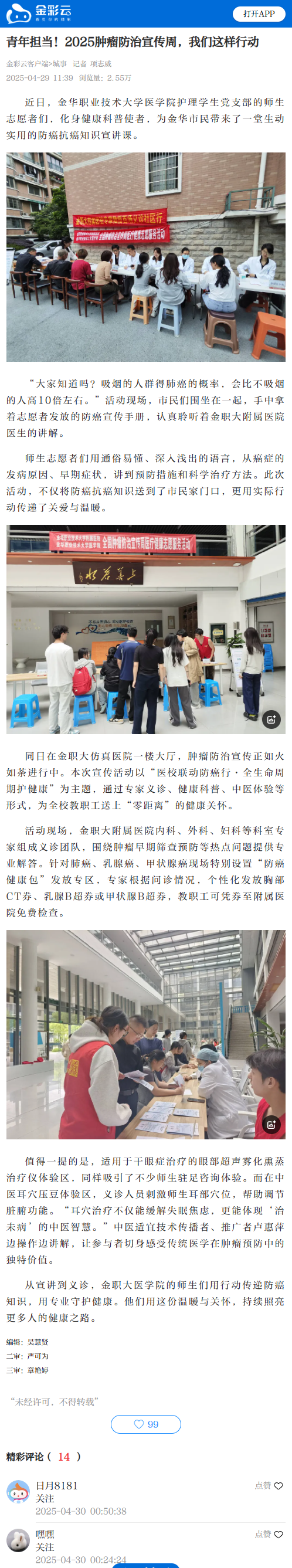 金彩云:青年担当!2025肿瘤防治宣传周,我们这样行动