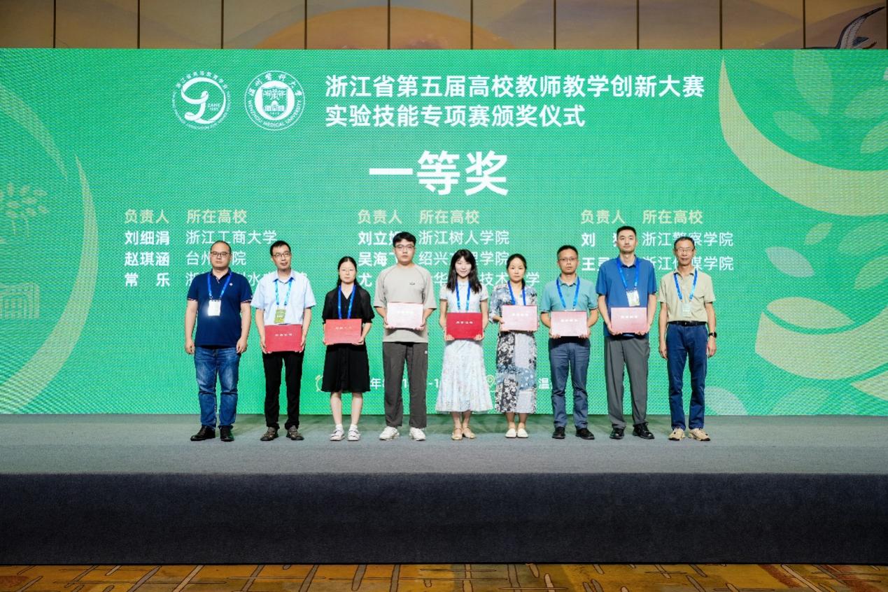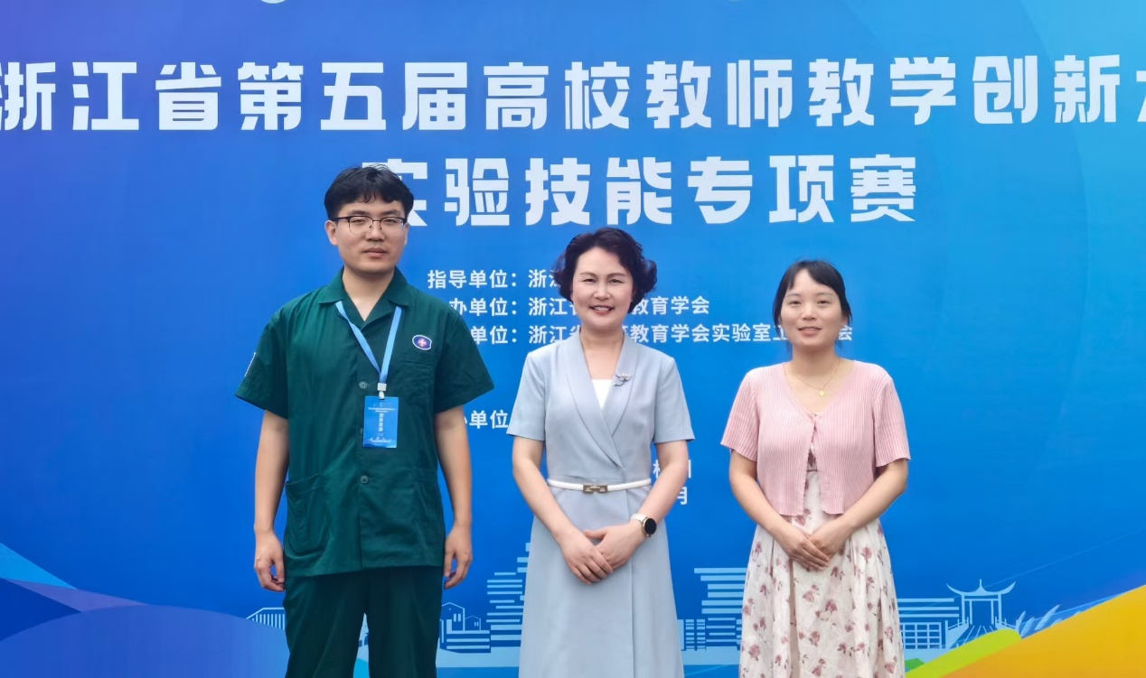 8月15日,在温州举办的国家级实验教学示范中心可持续发展暨实验教学提质创新研讨会上,浙江省高校教师教学创新大赛实验技能专项赛颁奖仪式隆重举行。金华职业技术大学医学院尤泽教师团队(成员:邓娟、胡爱招)凭借作品《基于“新医科”和“三动”目标导向的智能化实验教学创新实践——颈椎损伤患者的现场救护》,首次参赛即斩获一等奖,展现了医学院教师团队卓越的教学创新能力和实践育人水平。