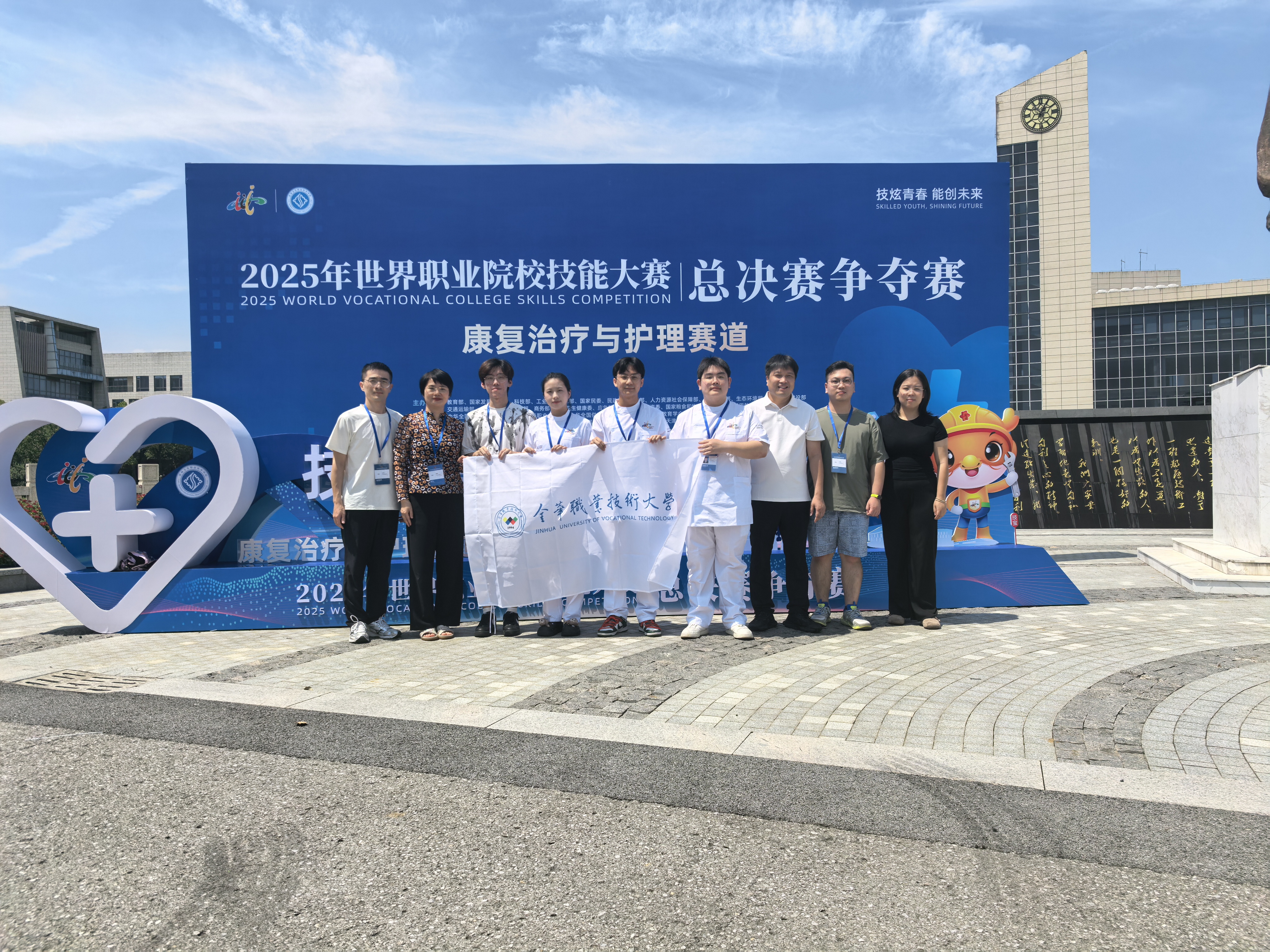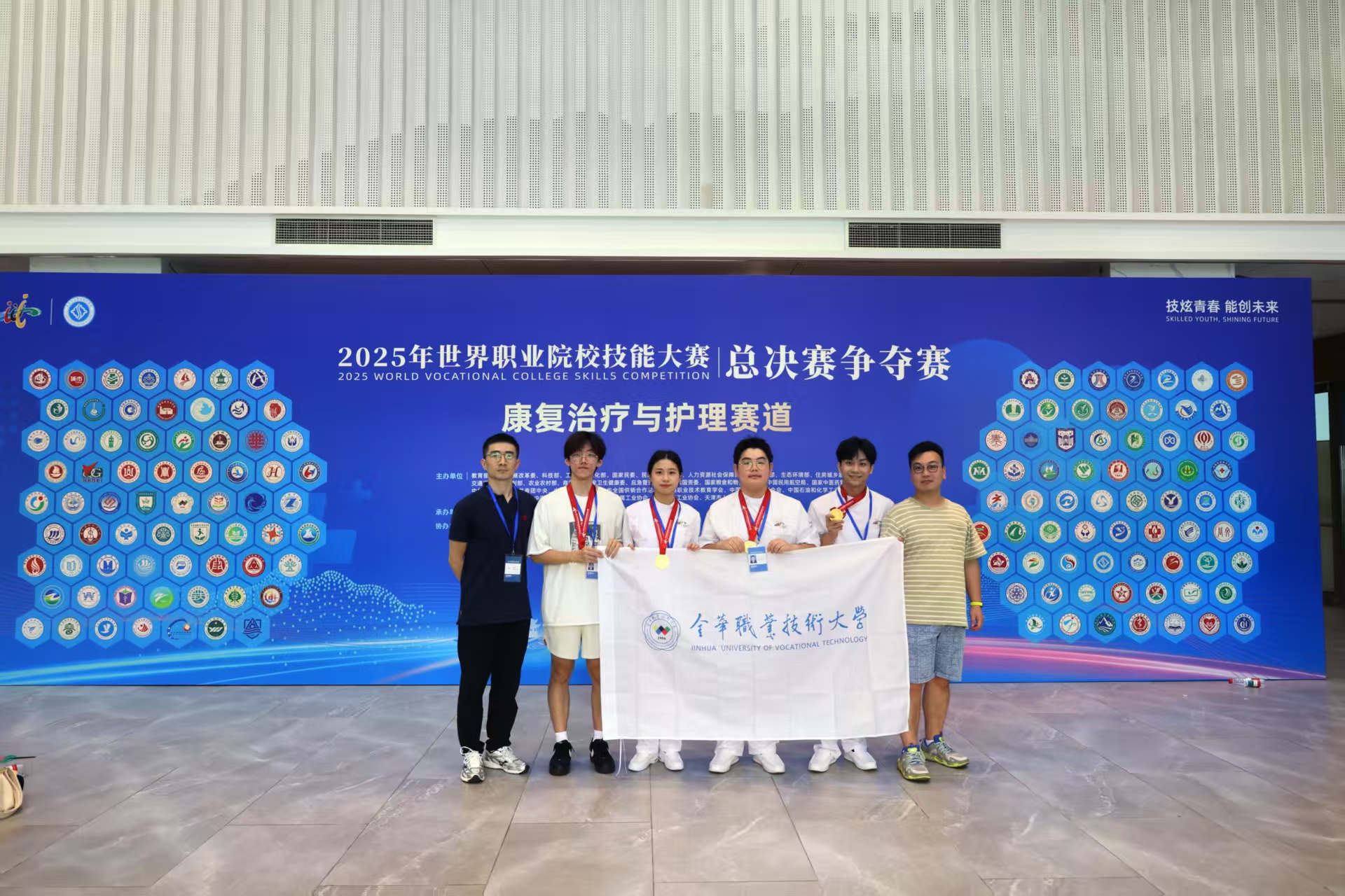 由金华职业技术大学医学院卢羿嘉、余若妮两位康复治疗技术专业教师指导,冯圣宇、孔德硕、戴慧敏、严天阳四位同学组成的康复团队,凭借扎实的专业功底、默契的团队协作与精准的实操表现,在激烈角逐中脱颖而出,最终斩获该赛道金奖,更是实现康复治疗技术专业在世校赛金奖“零的突破”。
