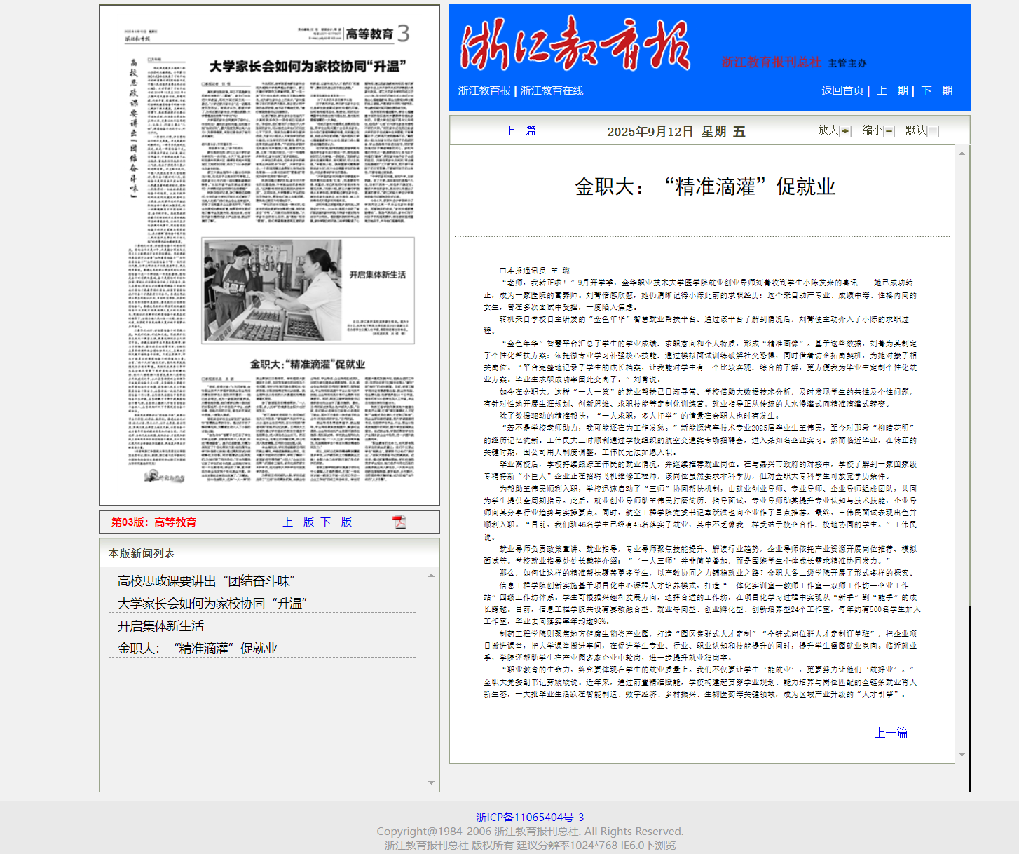 浙江教育报:金职大:“精准滴灌”促就业