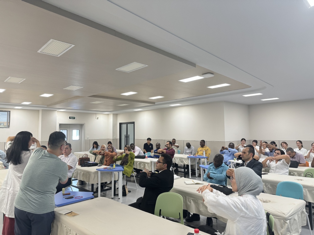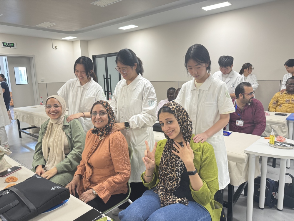 近日,医学院仿真医院内格外热闹,洋溢着中西医交融的蓬勃活力,20余名来自共建“一带一路”国家国际教育合作研修班成员们在此亲身学习体验了艾灸、拔罐、头疗、肩颈理疗与耳穴压豆等中医特色项目,为跨国健康合作注入了新动能。