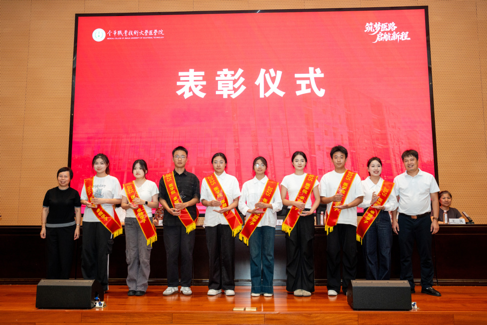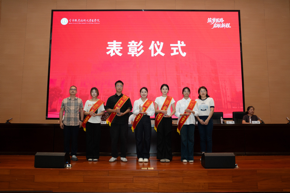 随后,2位校友和医学院领导班子成员共同为学院优秀学生进行了表彰,表彰过去一年在学习成长、技能竞赛、创新创业等方面取得优异成绩的卓越学子。