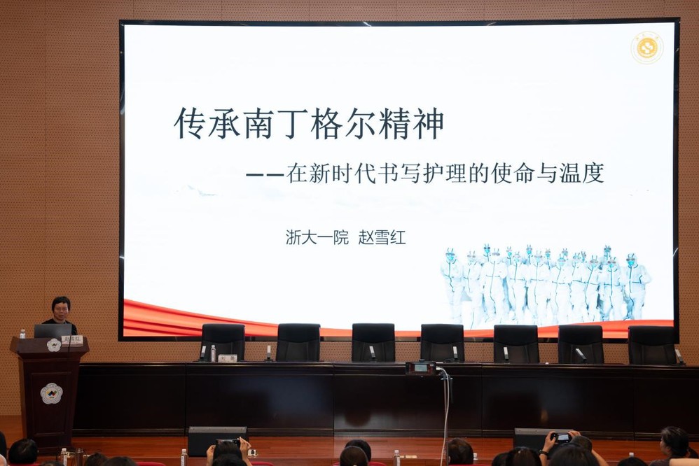 在时代危难中传递南丁格尔精神——校友赵雪红以“传承南丁格尔精神——在新时代书写护理的使命与温度”为题,分享护理工作的温度与专业精神。从1982年的中专起步,到2022年医院管理硕士毕业;从SARS发热门诊筹建,到汶川地震伤员转运,再到H7N9、埃博拉、新冠肺炎等重大公共卫生事件的一线坚守——浙大一院赵雪红用40年职业生涯诠释了什么是“生命至上”。哪里有需要,哪里就有她的身影。两次奔赴汶川地震灾区,主动请缨支援西非抗击埃博拉,新冠疫情暴发时提前结束假期返岗,承担浙江省95%重症患者救治……她说:“我们不必成为英雄,但永远准备好在平凡中点亮生命。”她坚信护理不仅是技能,更是科学。从解剖、生理基础出发理解疾病,保持好奇心追问“病人为什么烦躁”,让每一次注视都成为病情的探测器,让每一次执行都带着思考。“因为喜欢,所以热爱;因为热爱,所以坚定。”把平凡做到极致,便是最好的传承——她把南丁格尔精神写进了每一个平凡岗位的坚守中。