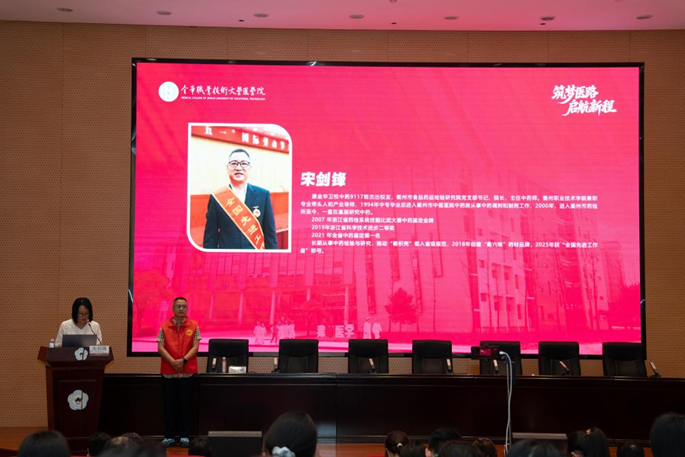 此次活动特别邀请了中药专业94届校友,2025年全国先进工作者宋剑锋,从医学院走出去的他,现已成为行业的标杆。如今,他载誉而归,分享医路心得。