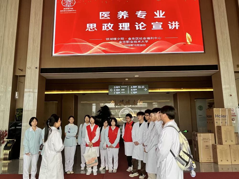重阳敬老暖人心,医养融合启生涯。在重阳节这个承载尊老传统的节日里,金华职业技术大学医学院首届医养照护管理专业本科生走进银湖暖夕阳·金东区社会福利中心,开展“爱在金秋,情暖重阳”专业实践活动。此次活动不仅是专业服务的实践场,更是一堂生动的生涯教育课,帮助学子们在服务中认知职业价值、明确发展方向,为未来职业生涯奠定坚实基础。