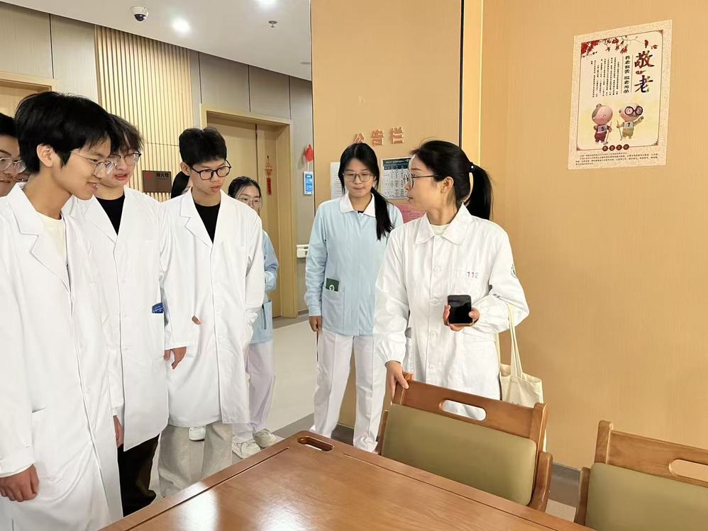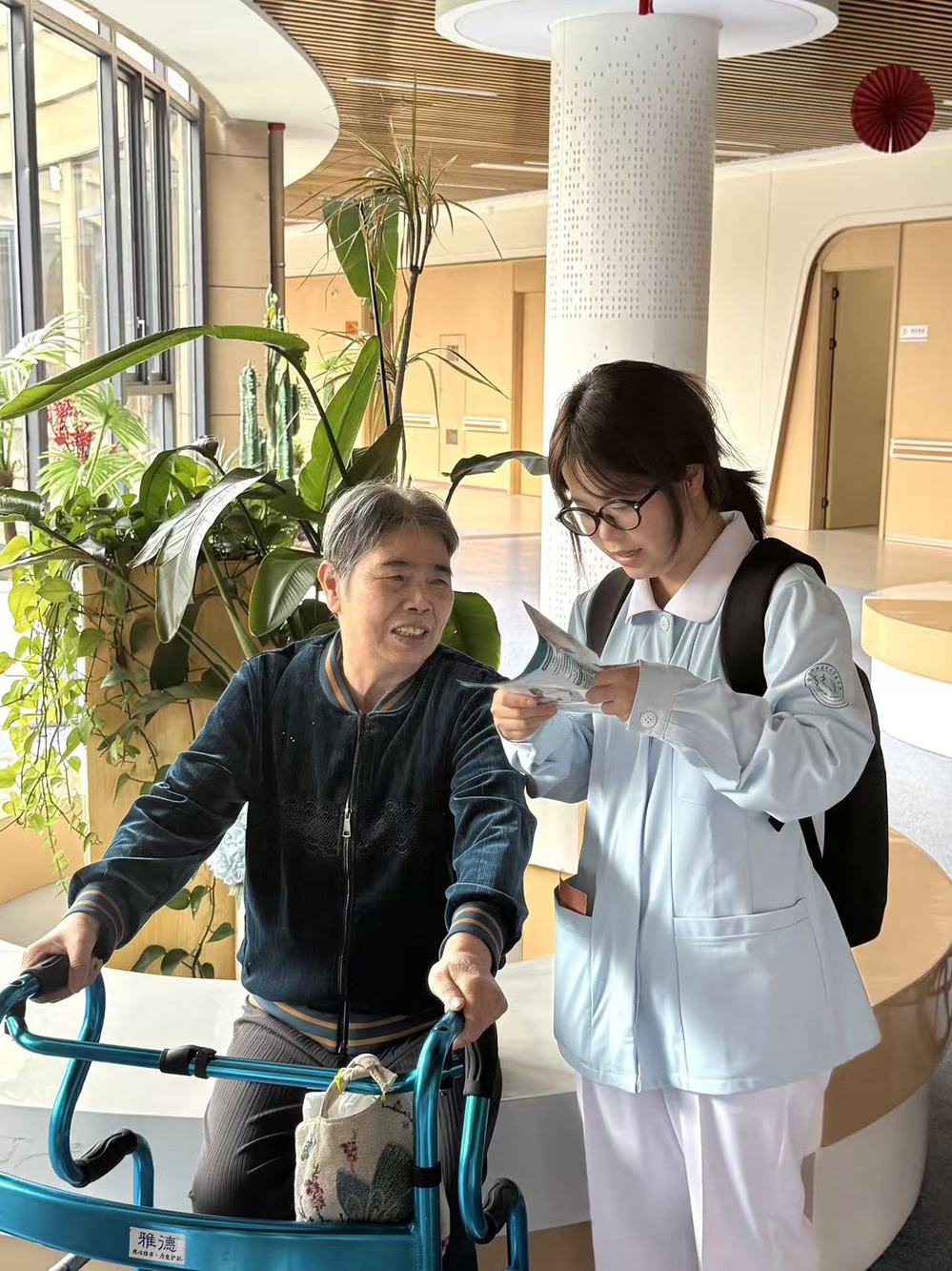 福利中心院长助理吴丹琪带领师生参观康复护理区、文娱活动区,并结合运营细节深入解析行业现状与人才需求。她指出:“老龄化催热医养产业,专业人才缺口大!”从基础的老年健康评估、康复辅助,到进阶的养老机构运营、个性化照护设计,她清晰梳理了岗位能力要求,并强调:“你们‘医疗+养老’的复合背景,就是未来就业的‘硬通货’!”这番话不仅解答了学生的职业困惑,更搭建起从“课堂学习”到“职场应用”的生涯桥梁,帮助学生明确职业路径与发展方向。