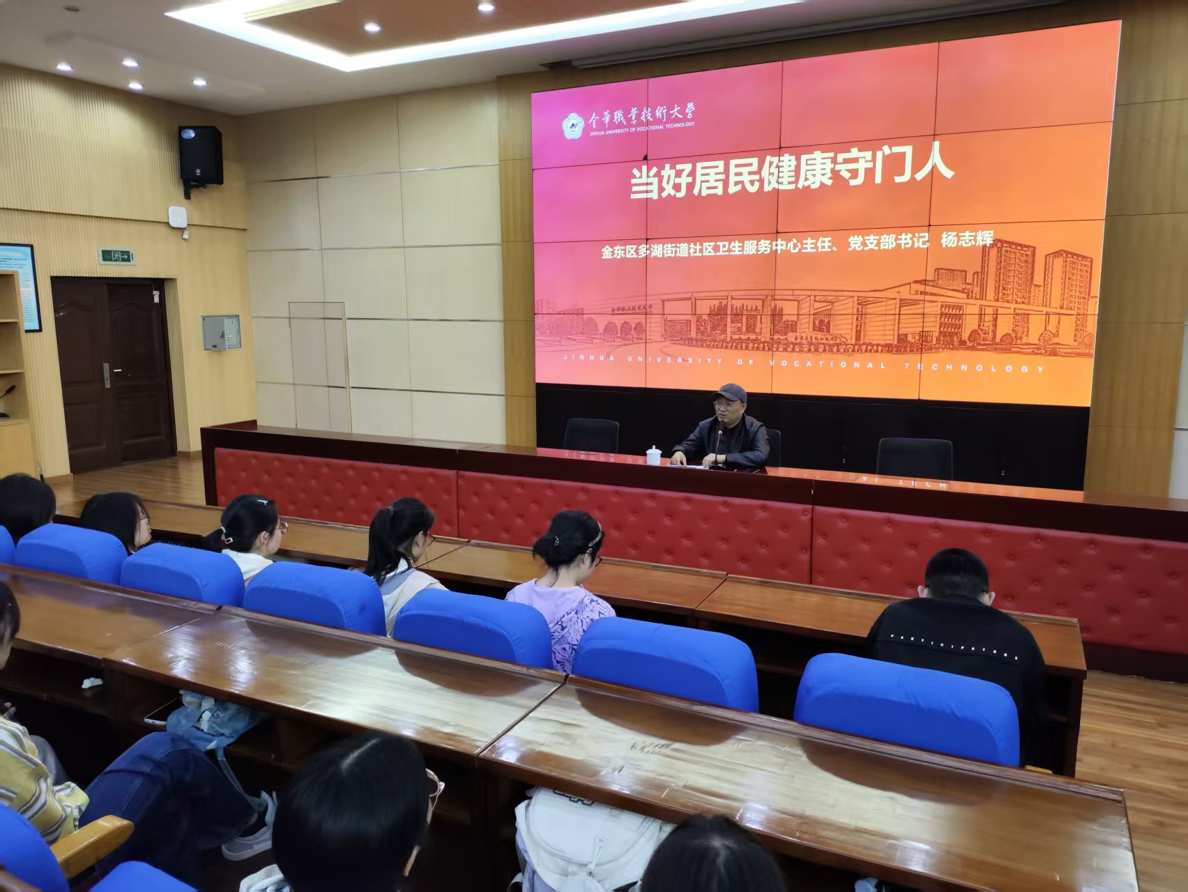 仪式结束后,金华市金东区多湖街道社区卫生服务中心主任、党支部书记杨志辉结合党的二十届四中全会精神为师生们带来了题为“当好居民健康守门人”的精彩分享,他结合自身从医三十余年的成长经历,围绕“健康守门人”的职责与使命,强调了全科医学在“健康中国”战略和积极应对人口老龄化背景下的重要意义,并指出医学不仅是技术的运用,更是人文的关怀。杨志辉鼓励同学们树立“以人民健康为中心”的服务理念,将来还可以投身于医养服务与管理事业,做有温度、有情怀的健康守护者。