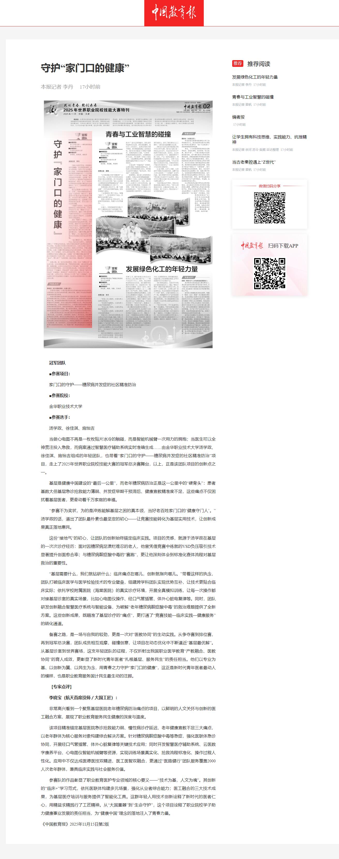 中国教育报:守护“家门口的健康”