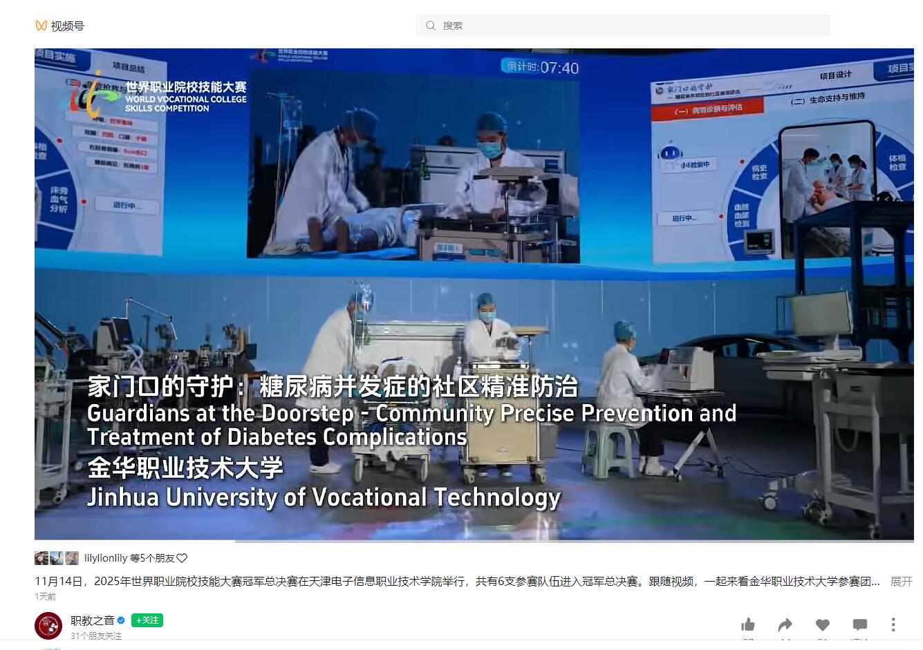 职教之音(视频号):11月14日,2025年世界职业院校技能大赛冠军总决赛在天津电子信息职业技术学院举行,共有6支参赛队伍进入冠军总决赛。跟随视频,一起来看金华职业技术大学参赛团队的比赛风采→