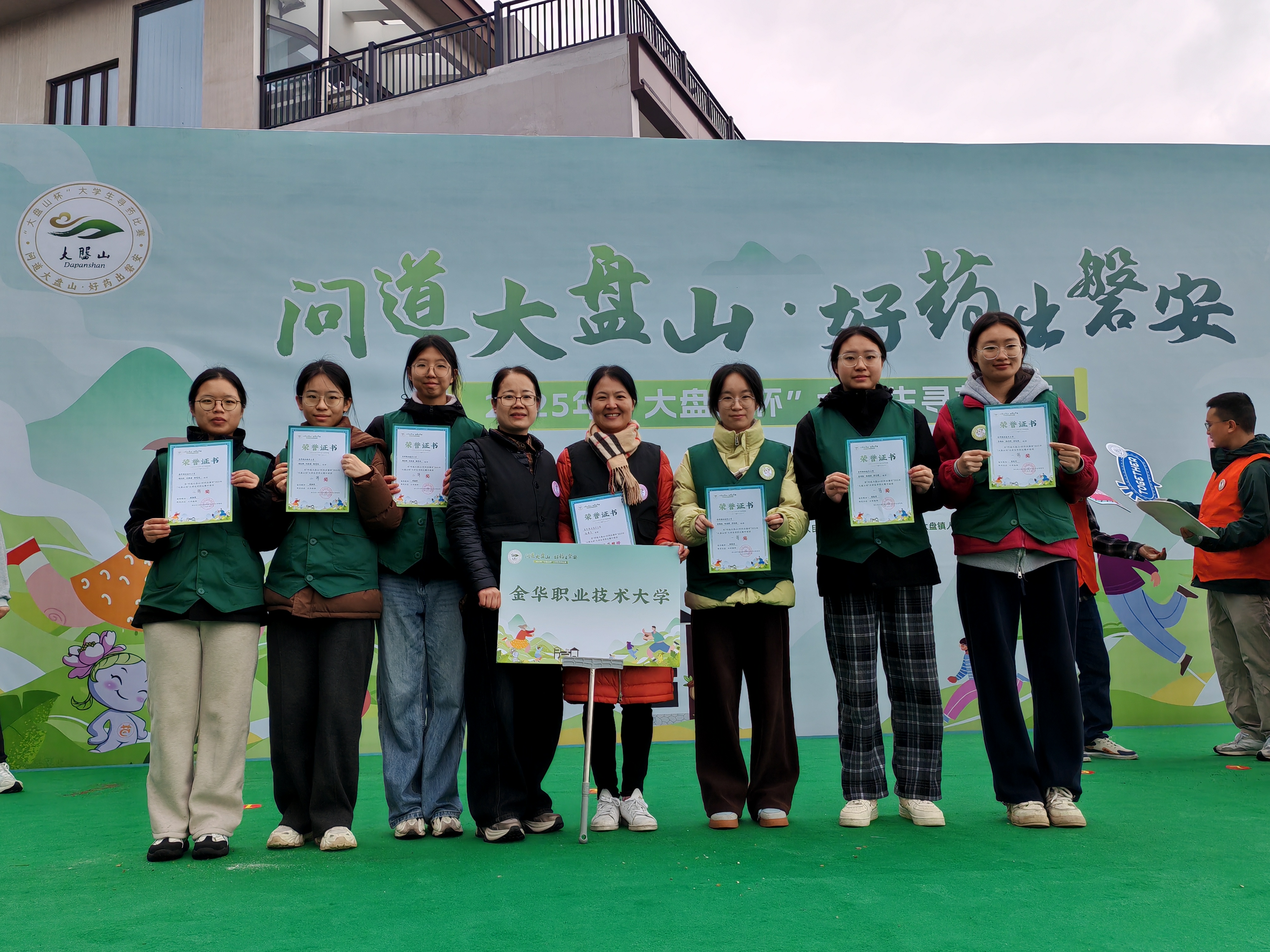 11月17日,2025年“大盘山杯”大学生寻药比赛在金华磐安的大盘山国家级自然保护区隆重开幕。本次大赛吸引了来自国内25所高校的46支队伍及3支国际队伍同台竞技,参赛选手覆盖专科、本科及研究生多个培养层次,竞争激烈。金职大学子作为唯一专科代表队参赛。最终,由张慧芳老师指导,中药231班学生余雨虹、柏诗琪、余佳妮三位同学组成的忍冬队获得一等奖,由施淑琴老师指导,中药231班谢祎琳、中药241班林雅茜、徐秀枝组成的金樱子队获得二等奖,张慧芳与施淑琴分获“优秀指导教师”称号。