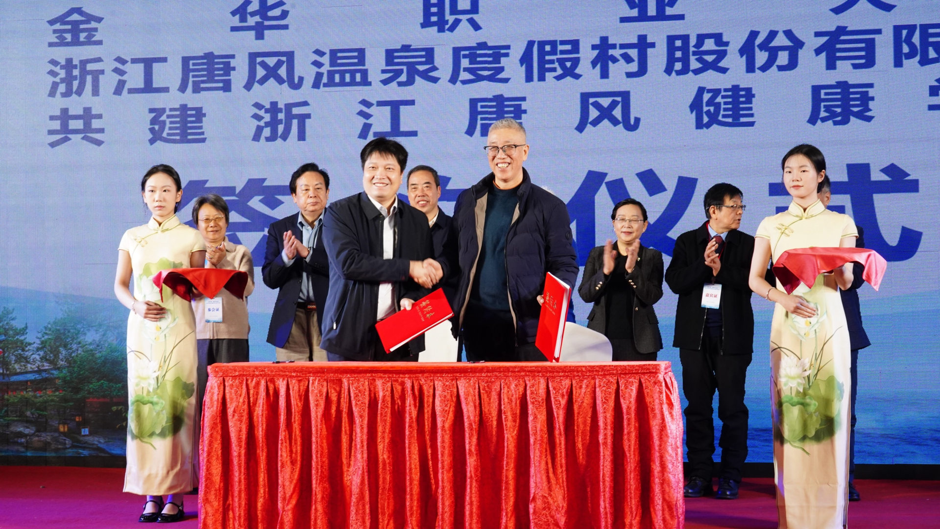 论坛开幕式上,在与会领导与嘉宾的共同见证下,金职大与浙江唐风温泉度假村股份有限公司正式签署《2025—2030年合作框架协议》。双方将以共建“浙江唐风温泉研究院”和“康养产业创新综合体”为核心载体,深化“院中院、岗中岗、课中课”育人模式,推进“水疗+”复合型技术技能人才培养,联合开展标准研制、技术研发与项目孵化,全面服务武义打造“长三角区域高品质温泉康养名城”战略目标。