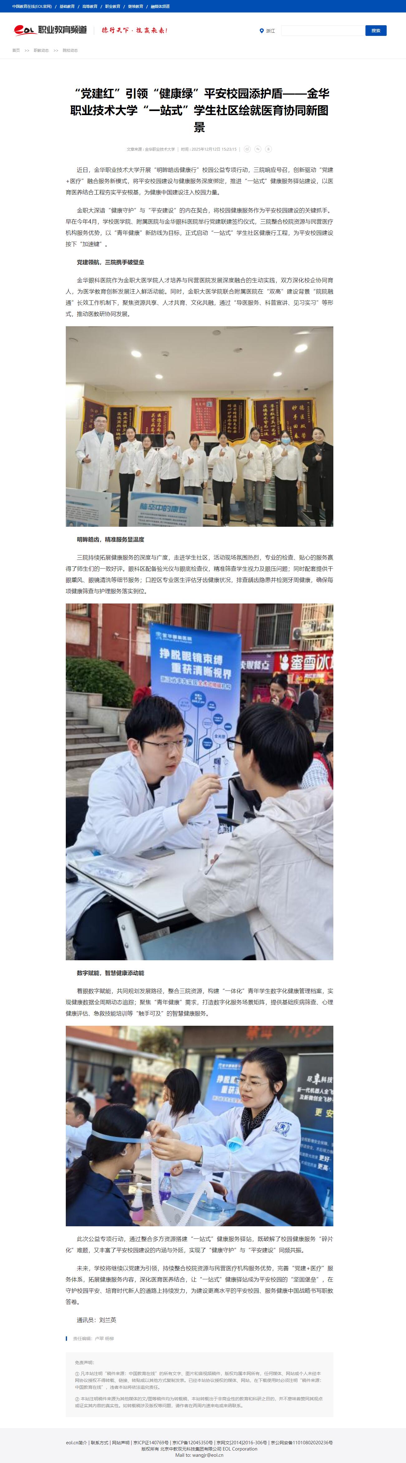 中国教育在线:“党建红”引领“健康绿”平安校园添护盾——金华职业技术大学“一站式”学生社区绘就医育协同新图景