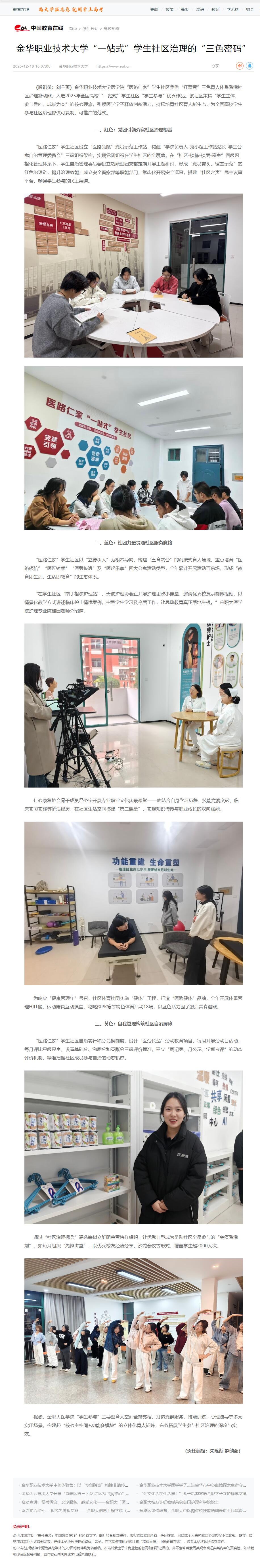 中国教育在线:金华职业技术大学“一站式”学生社区治理的“三色密码”
