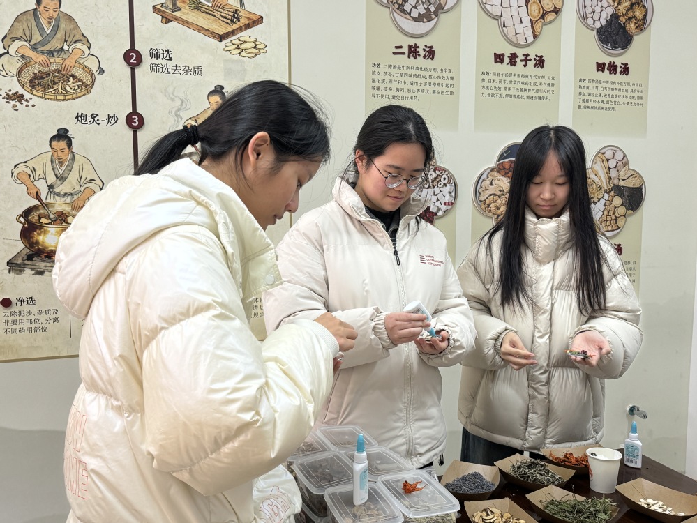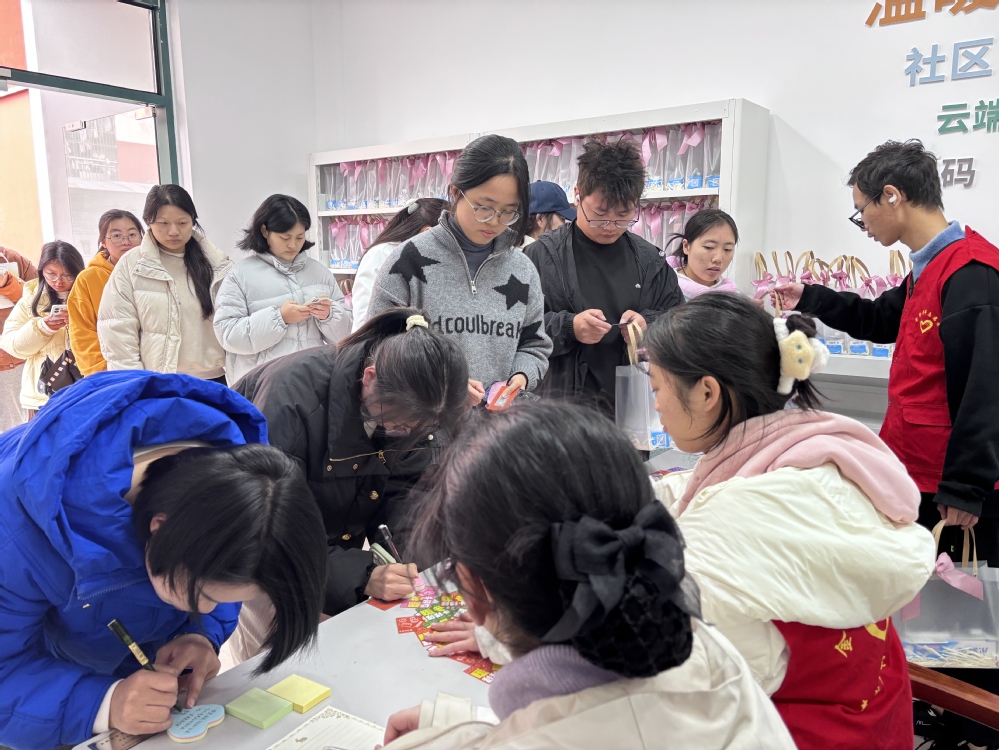 启动仪式后,医路仁家“一站式”学生社区化身冬日游园会场。同学们手持“暖冬刮刮卡”,在社区各功能房开启了一场沉浸式探索之旅,大家依次前往趣享交换空间、自治立方站、暖心共享仓进行签到、刮卡和物资兑换,环节有序,仪式感十足。杏林春暖坊内,中药茶饮品尝与创意手作活动同步展开,专业文化与美育实践完美融合。成长合作社、阳光心田、静息充电站等空间,实现“生活—心理—学业”链条闭环,共同营造支持学生全面成长、可持续发展的温馨社区生态。