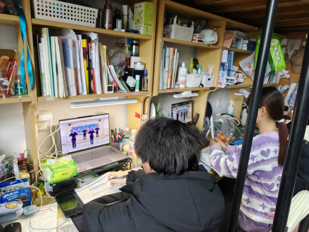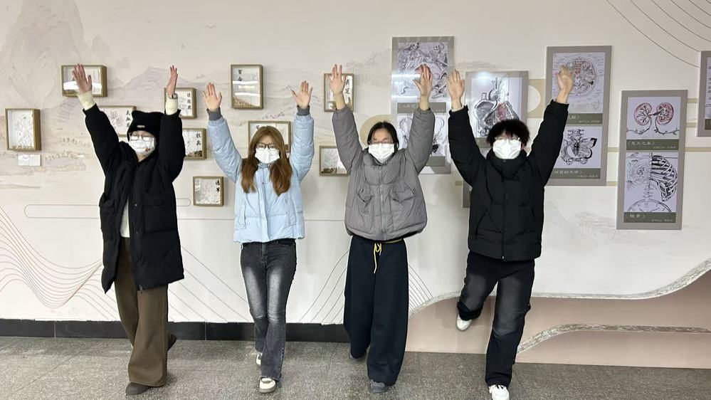 如今,无论是在教室、公寓、实训场还是图书馆,总能看到同学们利用复习间隙,随着舒缓的节奏伸展肩颈、活动腰背。大家结伴练习、互相鼓励,在舒展中缓解疲劳,也在共同坚持中传递温暖。