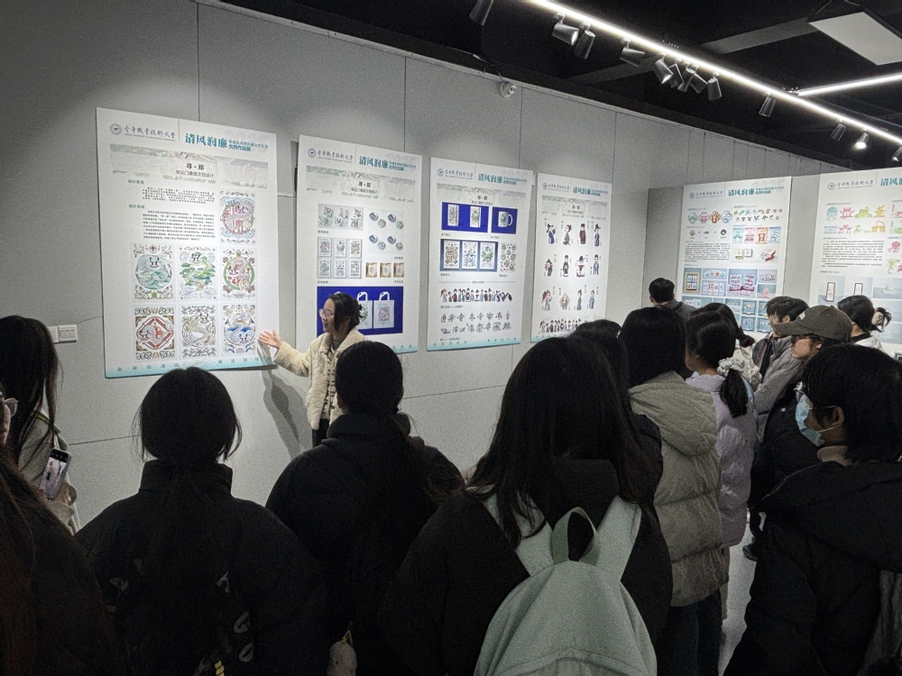 本次作品展的主题为“清风润廉”,是金职大首届“金湖清风”廉洁文化月的现场作品展示活动,在现场,学生骨干们结合医学院社团指导老师的讲解,沉浸式感受廉政文化与医学初心的深度共鸣。