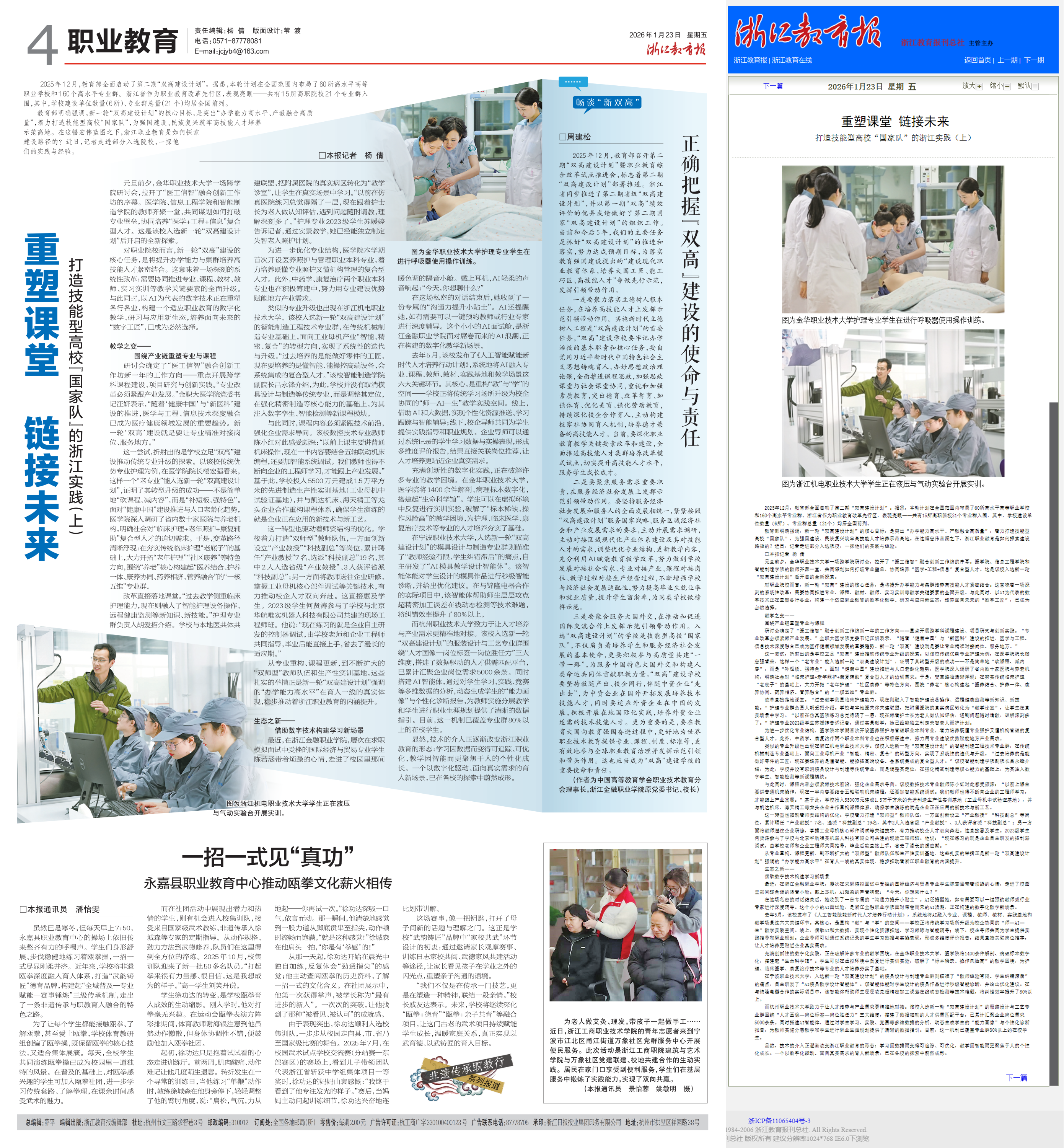 浙江教育报: 重塑课堂 链接未来 打造技能型高校“国家队”的浙江实践(上)