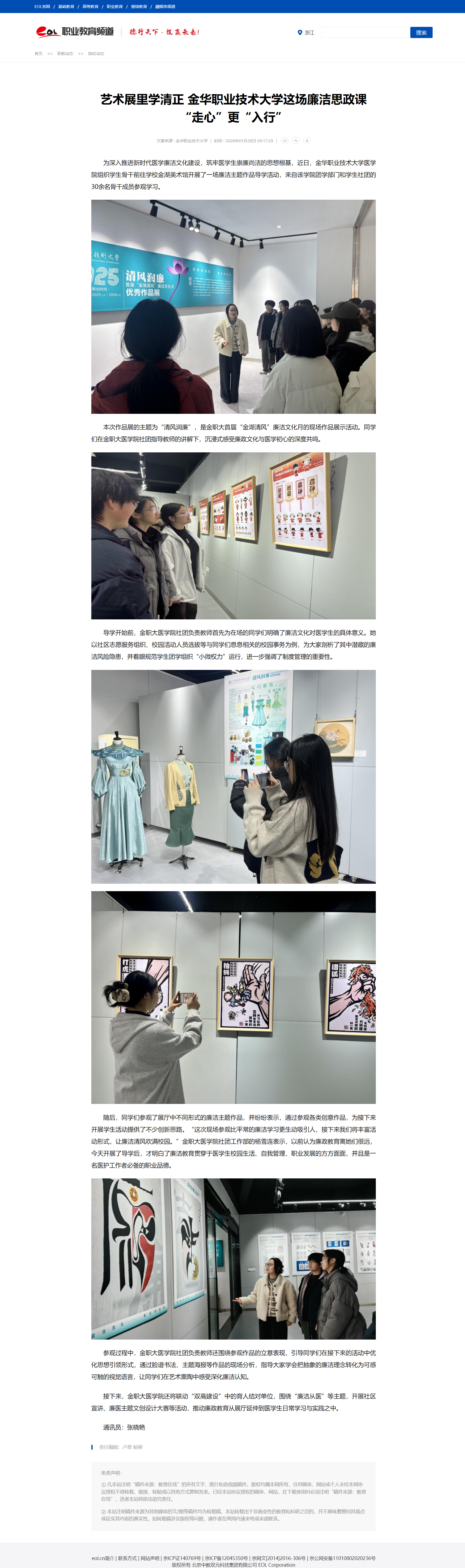中国教育在线: 艺术展里学清正 金华职业技术大学这场廉洁思政课“走心”更“入行”