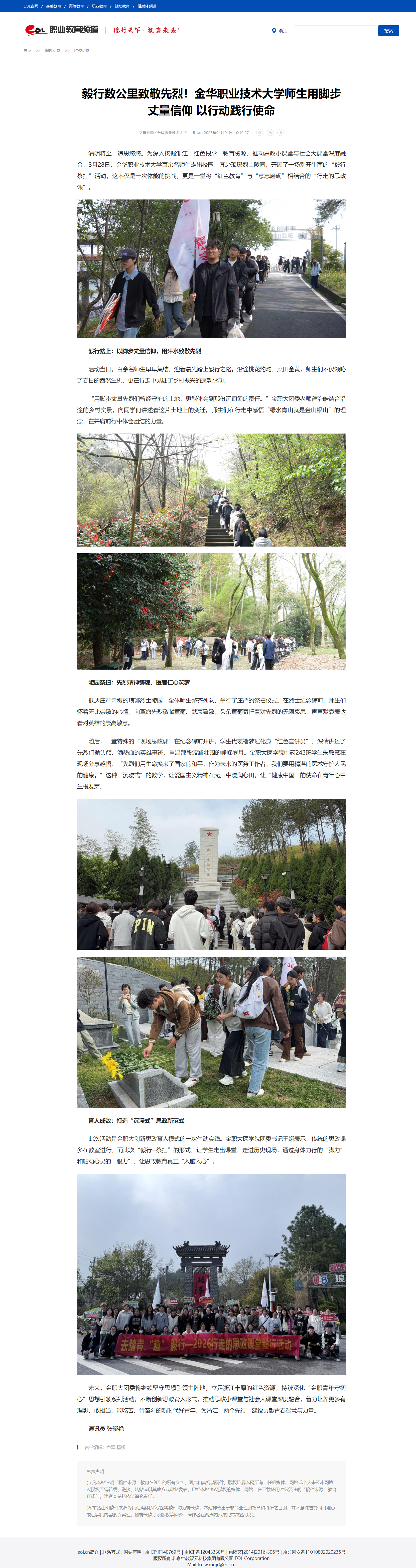 中国教育在线:毅行数公里致敬先烈!金华职业技术大学师生用脚步丈量信仰 以行动践行使命