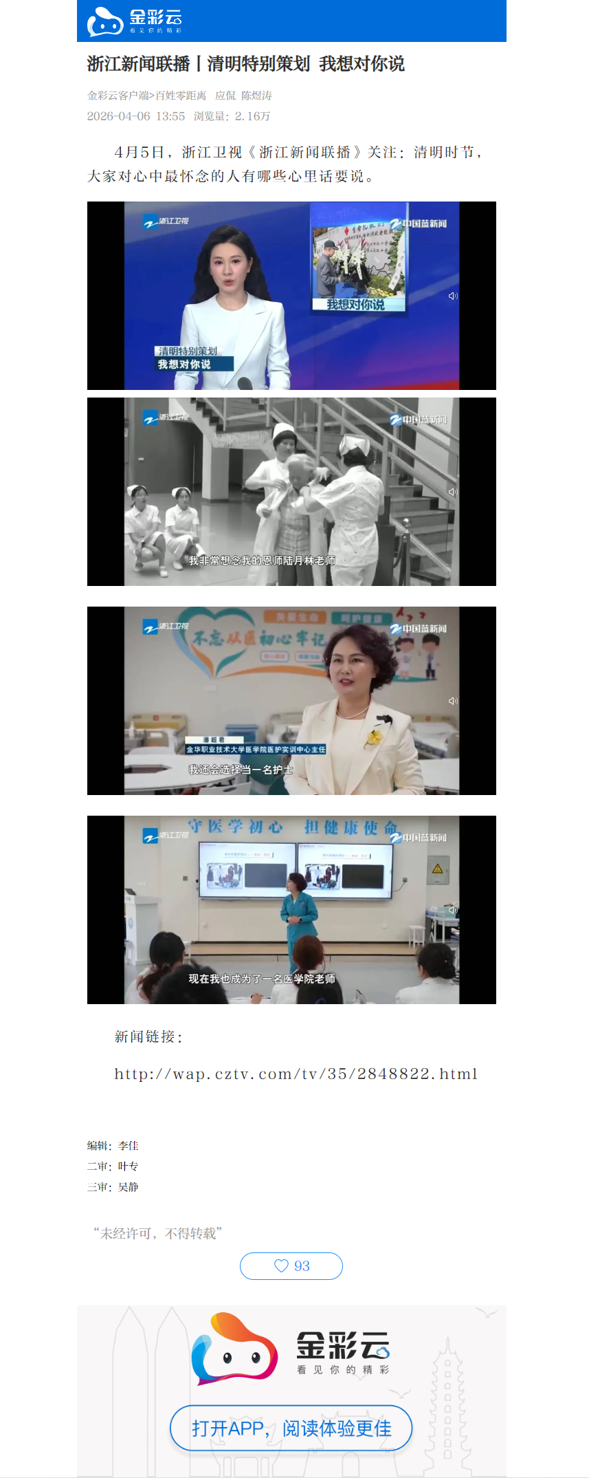 金彩云:浙江新闻联播丨清明特别策划 我想对你说