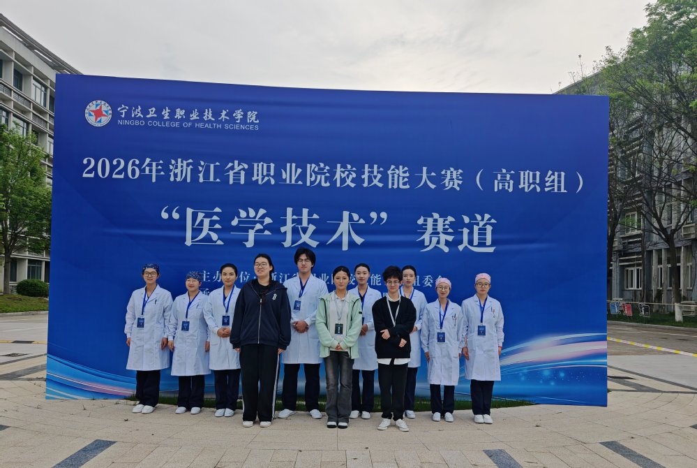 4月12 日,2026 年浙江省职业院校技能大赛高职组医学技术赛道在宁波卫生职业技术学院圆满落幕。本次大赛汇聚了全省高职院校临床医学、检验医学、眼视光学等方向16 支队伍同台竞技,金华职业技术大学医学院代表队凭借扎实的专业技能和稳定的临场发挥,最终斩获 1 金 1 银的优异成绩,其中金奖团队在复评中荣获第 1 名。